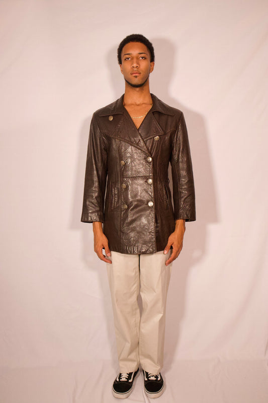 MANTEAU DE CUIR DE STYLE INSPECTEUR