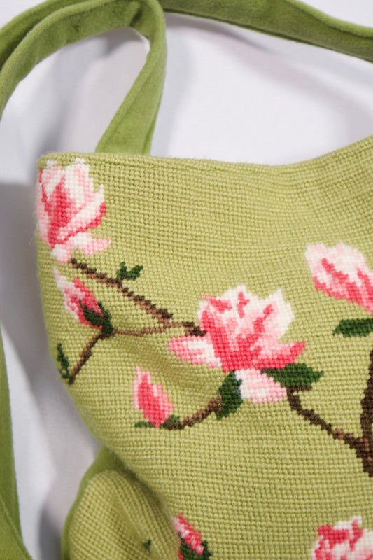 SACOCHE VERTE FLEURIE