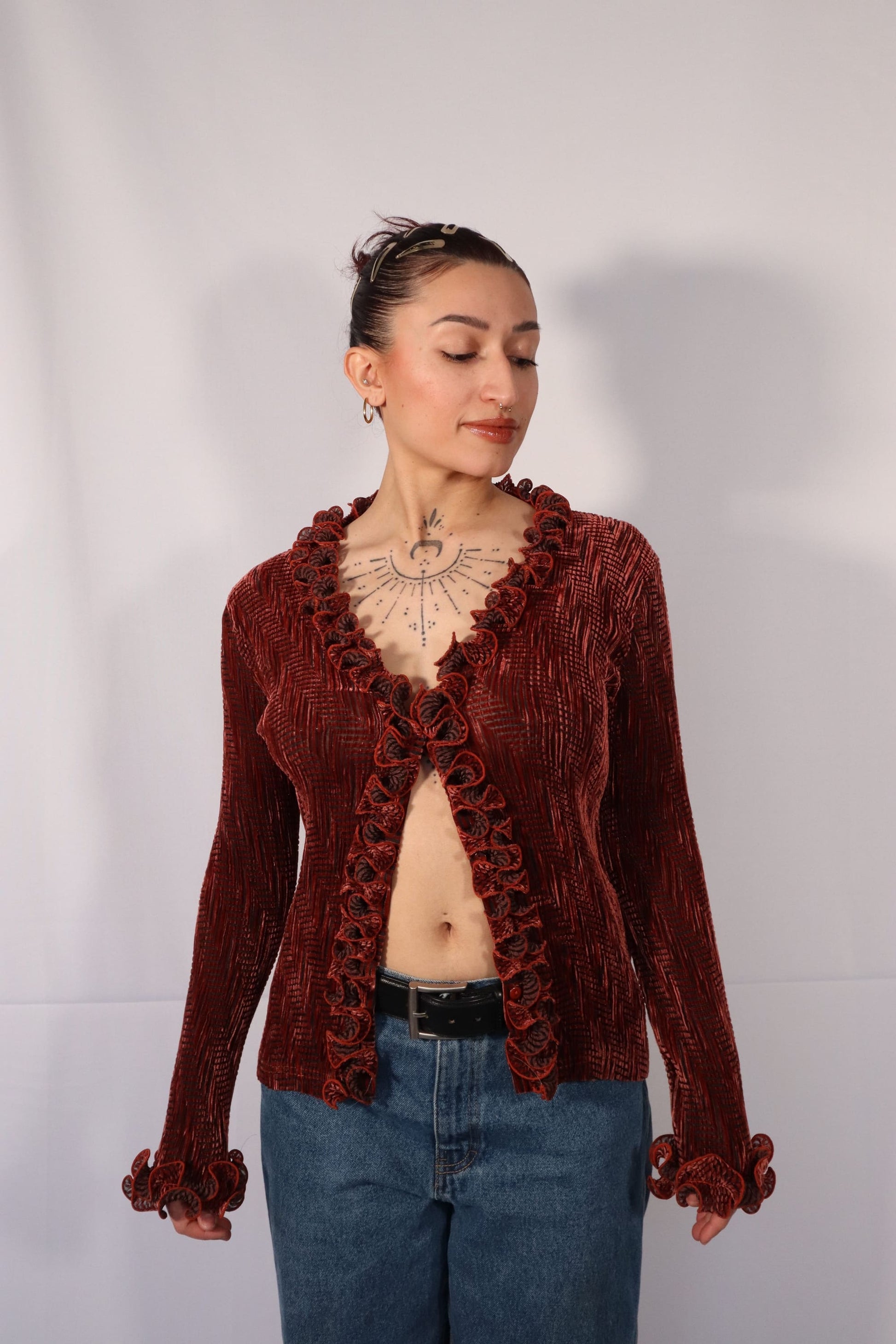 Dans la catégorie Reshop, voici la sélection; Chandail de la marque Émotions. Ce chandail a une texture ligné et des détails ''twisted'' au niveau des poignets et du devant du vêtement.