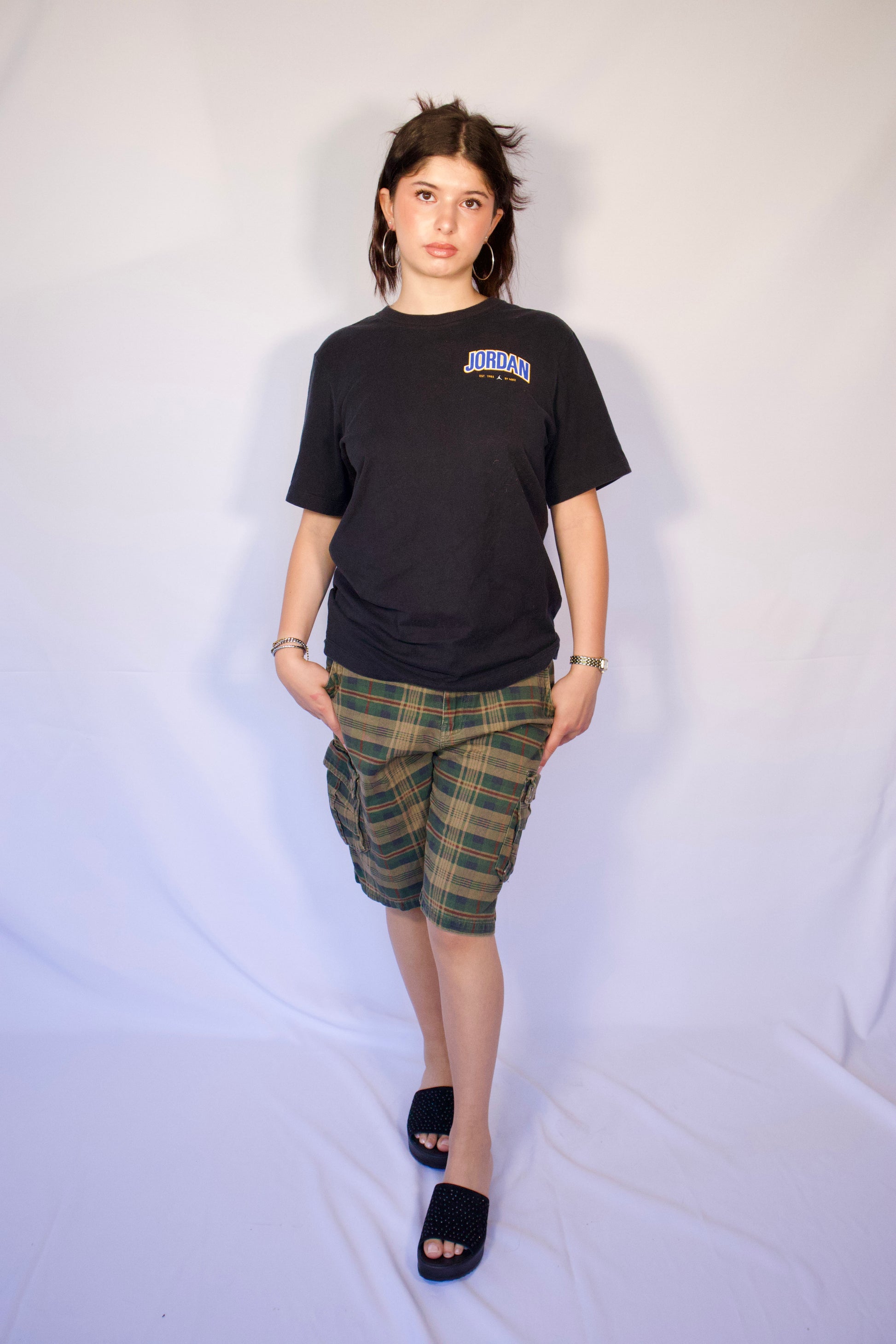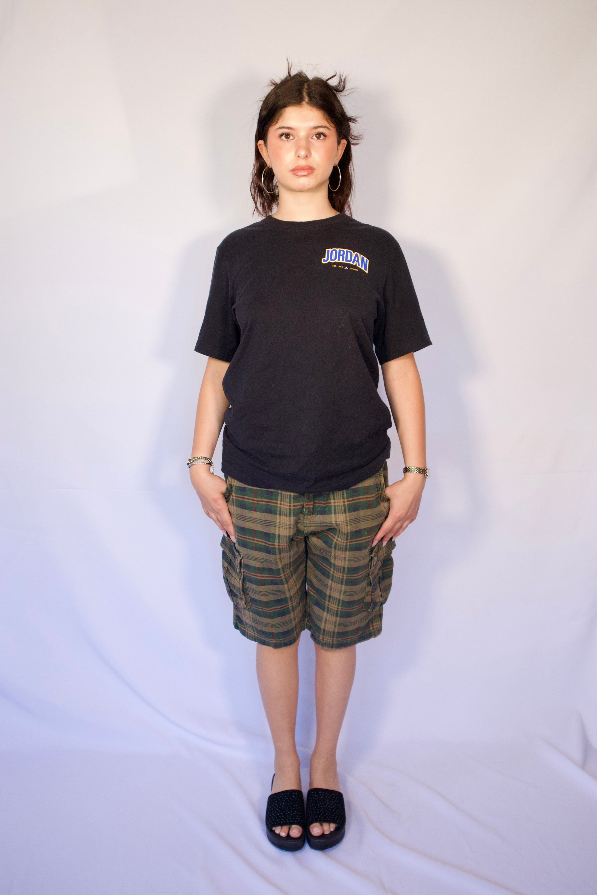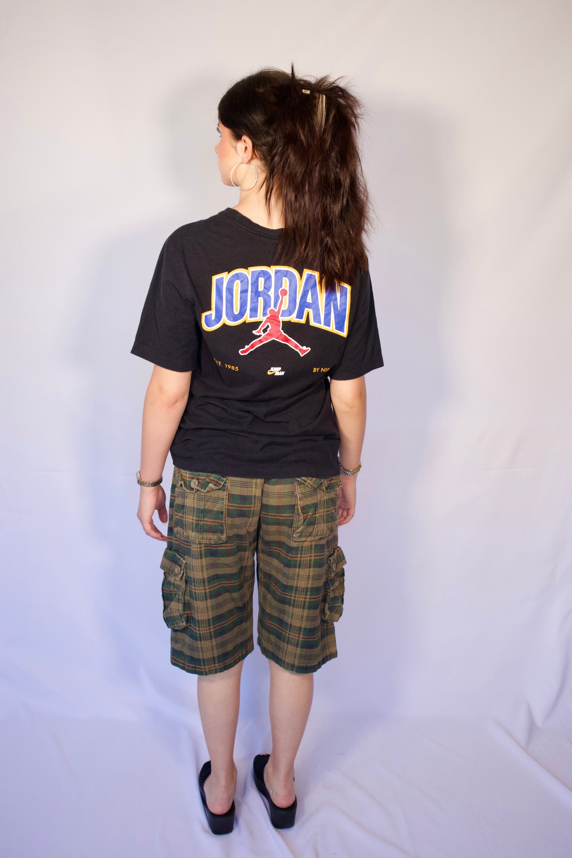 Dans la catégorie Reshop, voici la sélection; Chandail à manches courtes de la marque Jordan. Ce t-shirt a le classique logo de marque dans les couleurs de jaune, bleu et rouge.