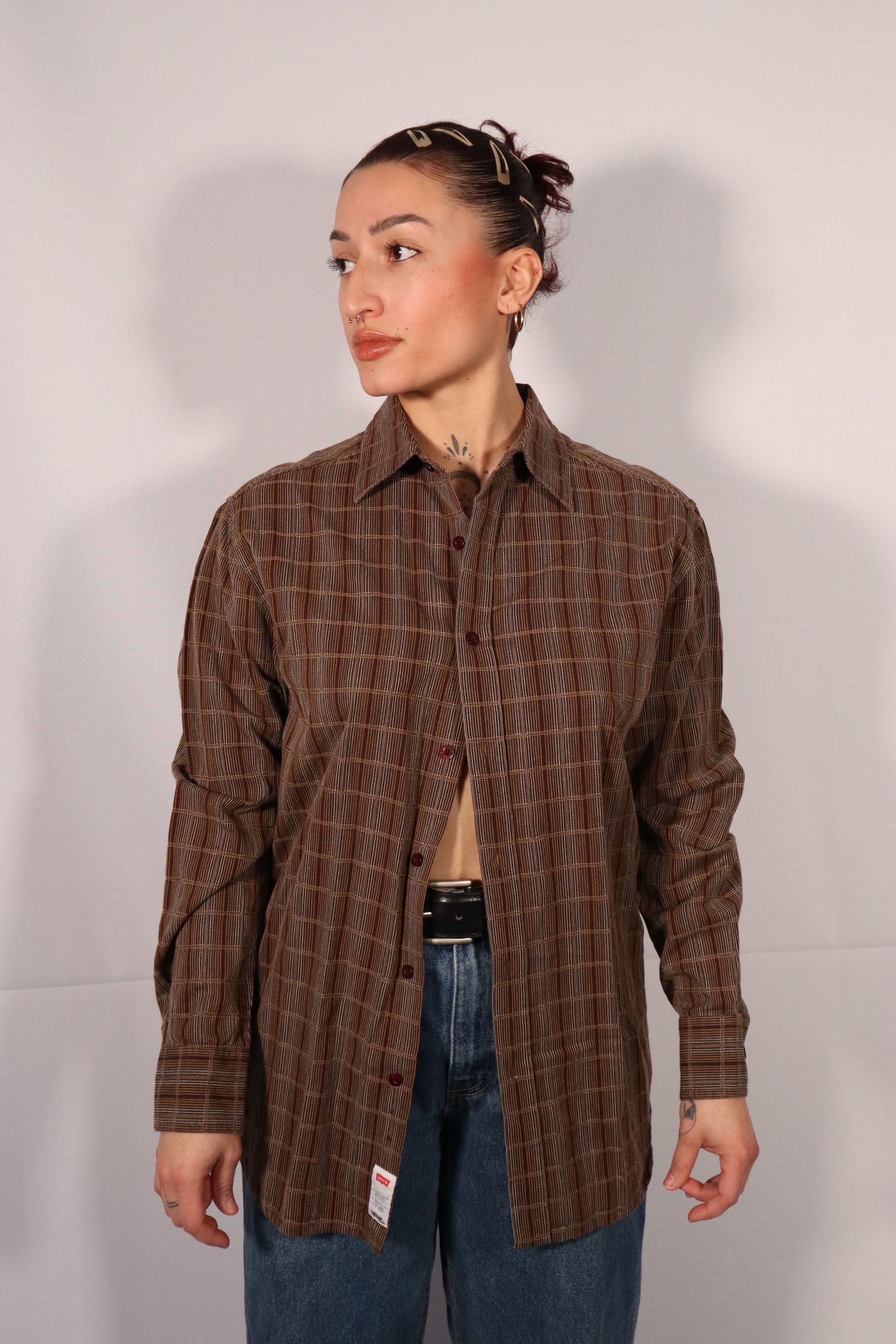 Dans la catégorie Reshop, voici la sélection; Chemise de la marque Levis. Cette chemise a plusieurs tons de brun et un style de carreaux varié.