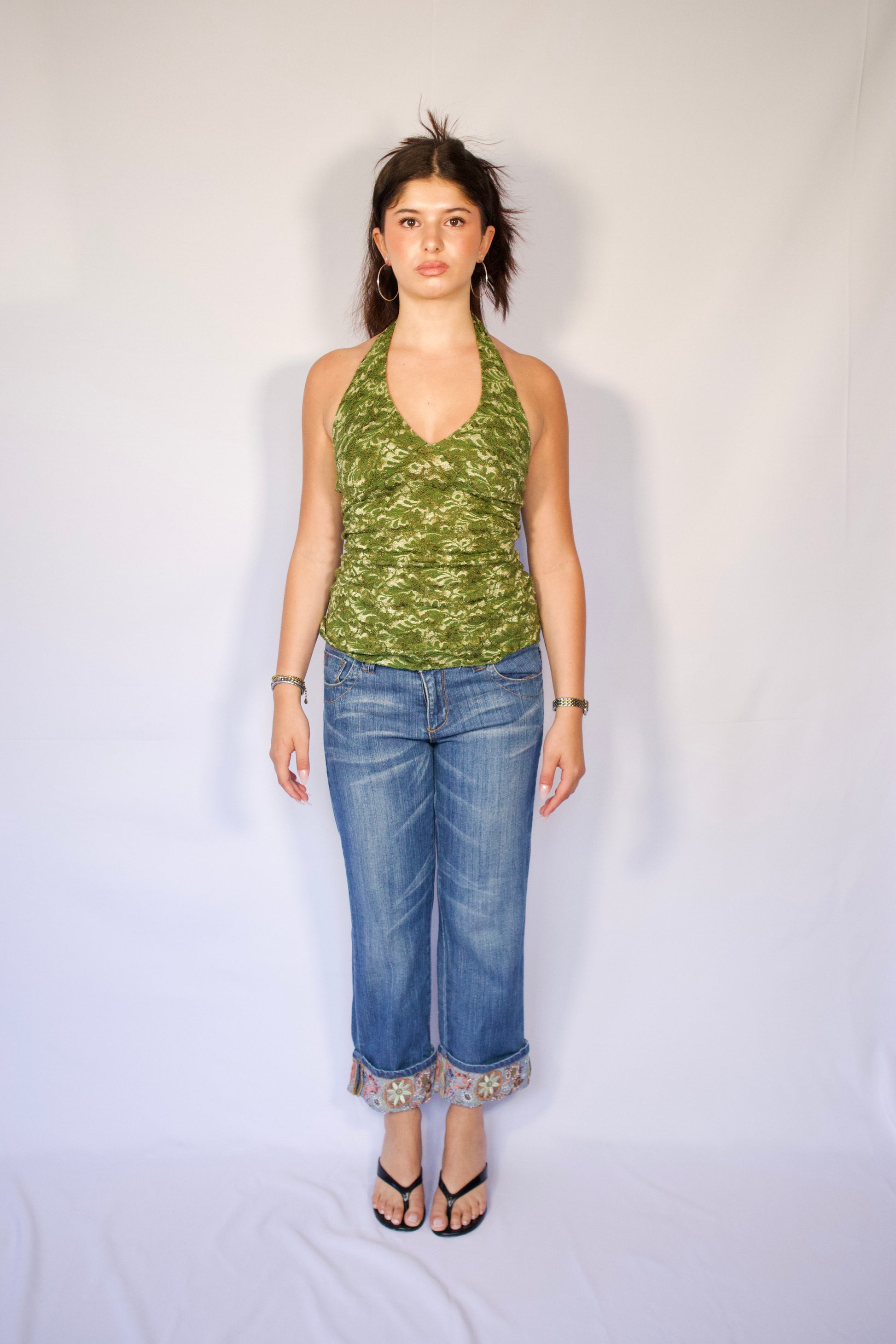 Dans la catégorie Reshop, voici la sélection; Haut vert de la marque Le Chateau. Ce haut s'attache au cou et a le dos ouvert. Il a des détails dans le tissus en dentelle. Très ''été'' et ''coquette''.