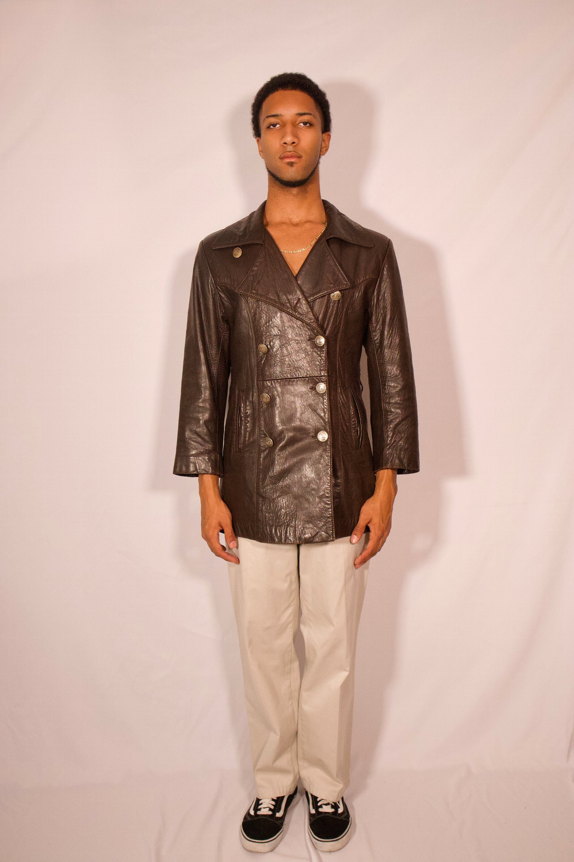 MANTEAU DE CUIR DE STYLE INSPECTEUR