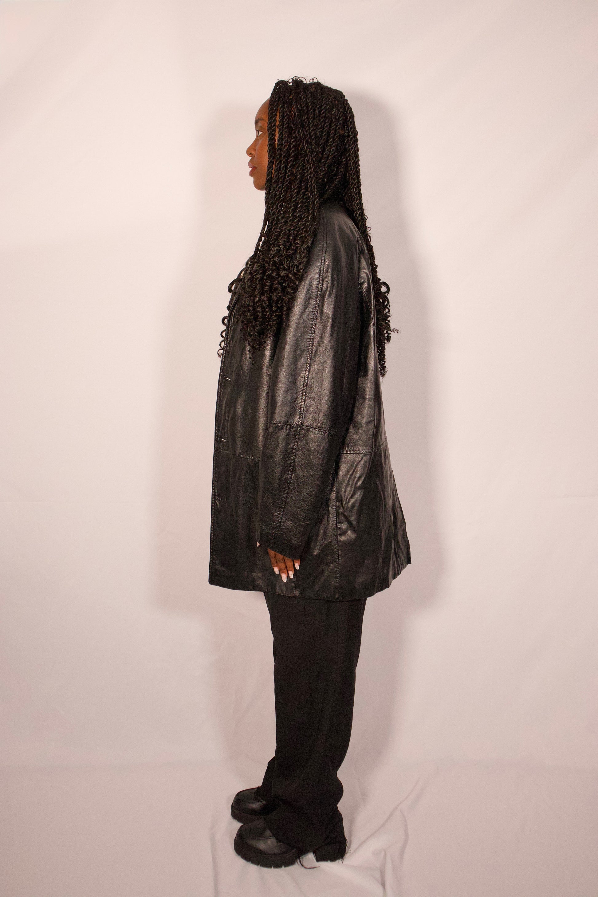 MANTEAU EN CUIR NOIR COUPE DROITE