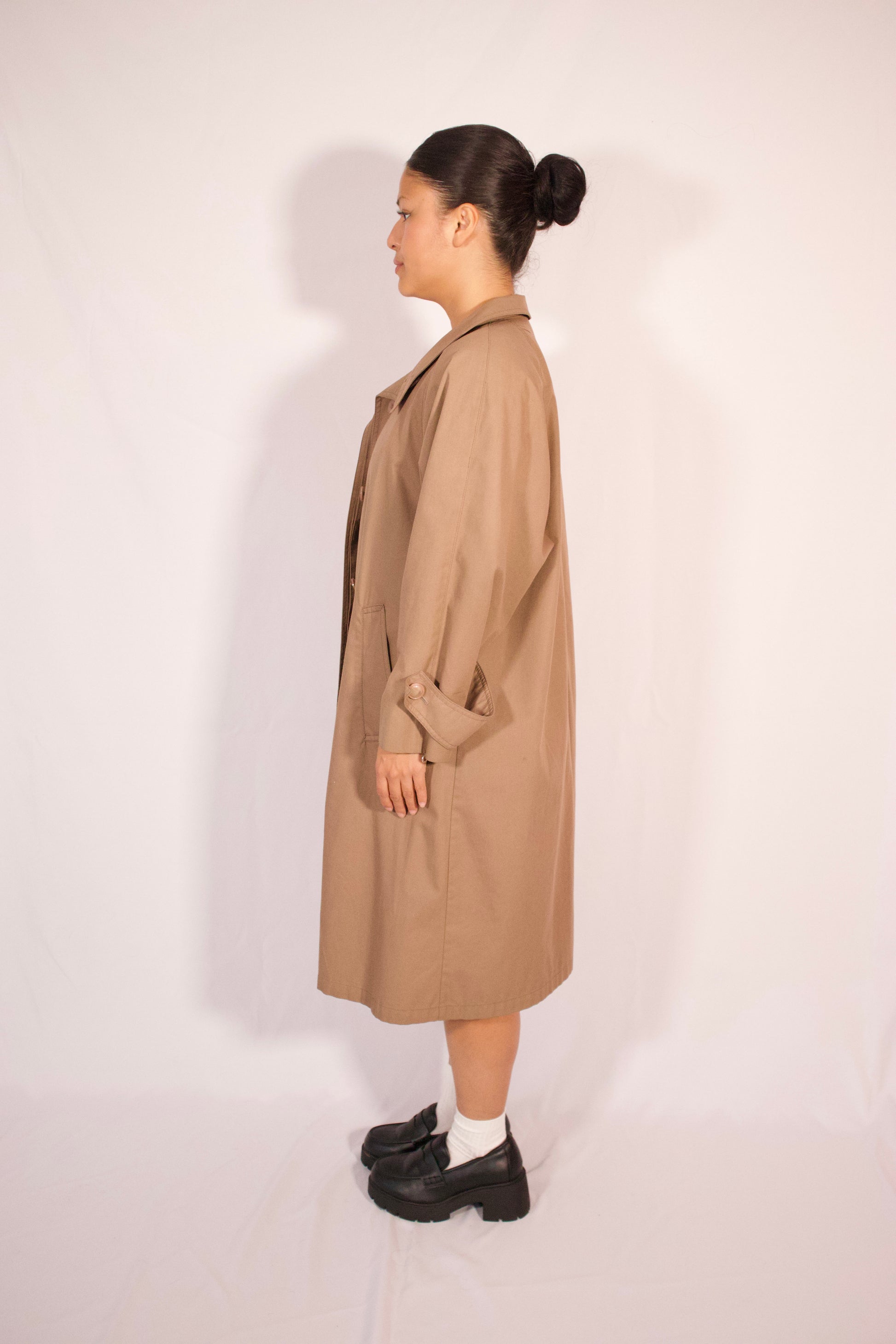 Ce manteau n’a pas de ceinture mais donne justement un style ample, large et déconstruit. Un beau trench coat beige comme on les aime.