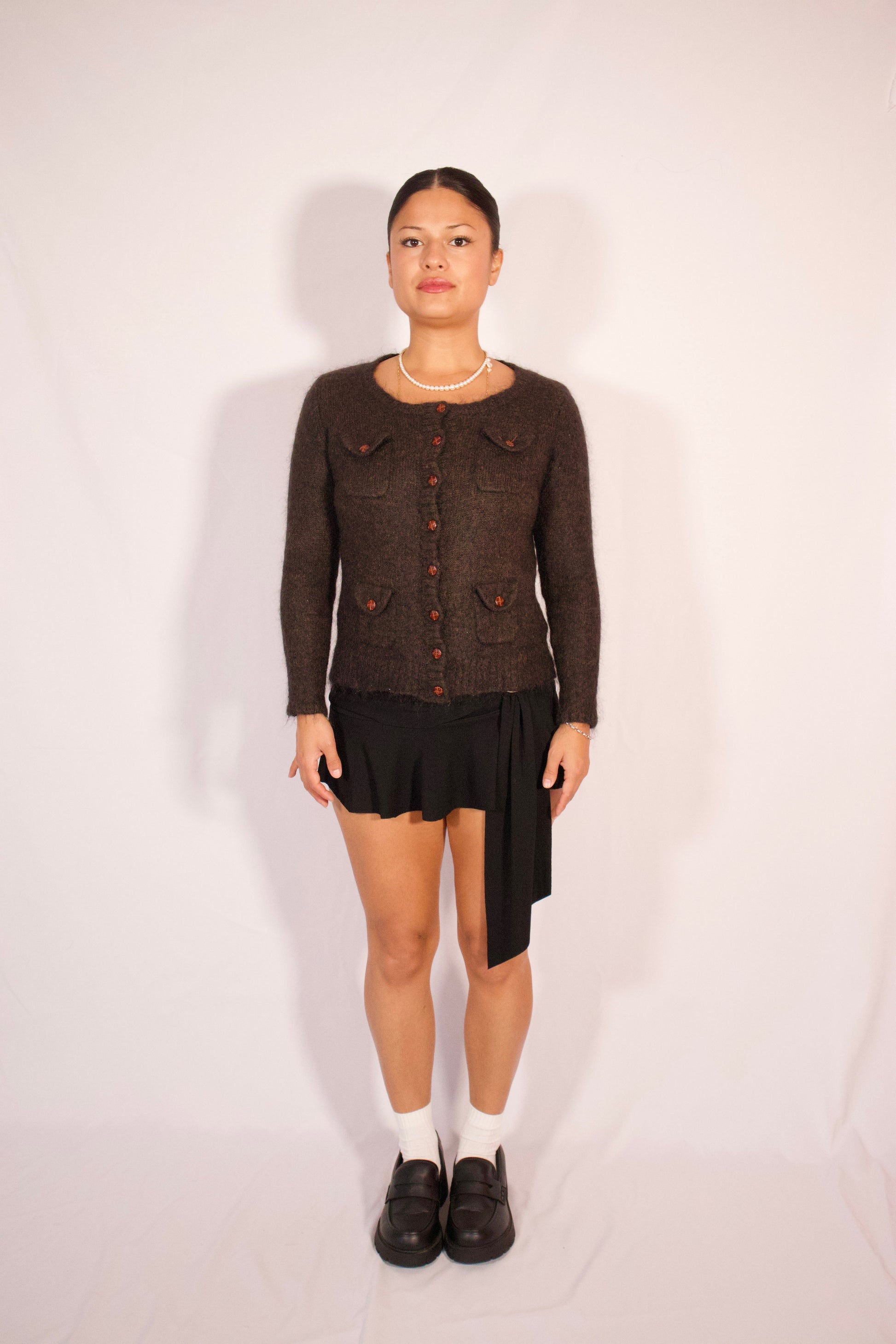 Dans la catégorie Reshop, voici la sélection; Cardigan de la marque Contemporaine Simons. Ce petit cardigan a un style casual chic avec des petits détails brun.